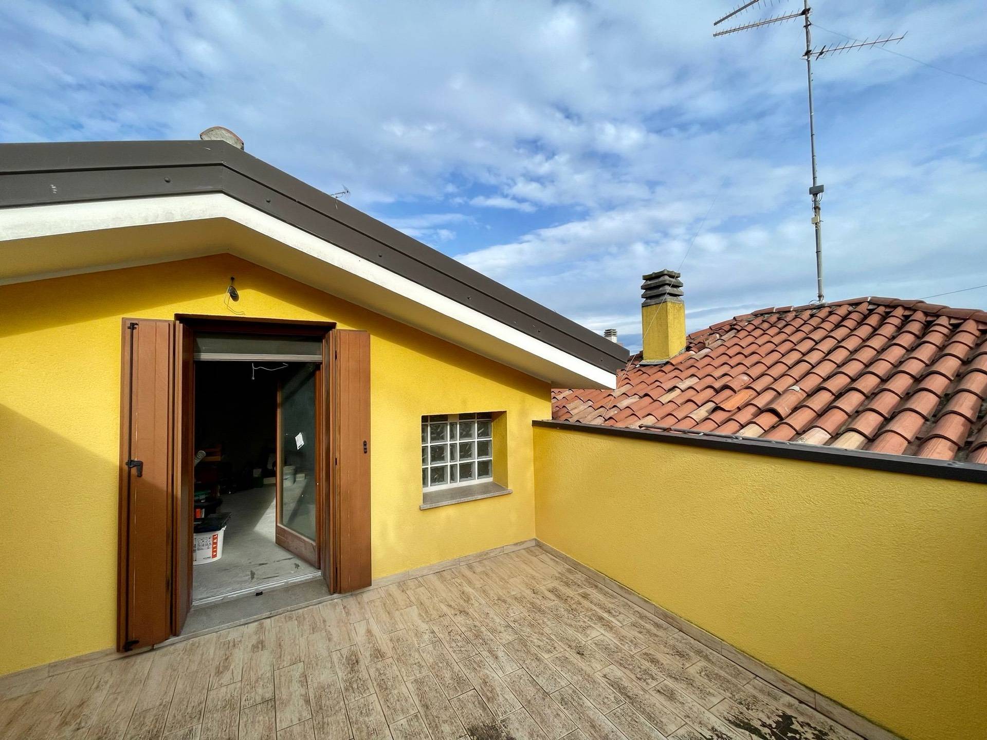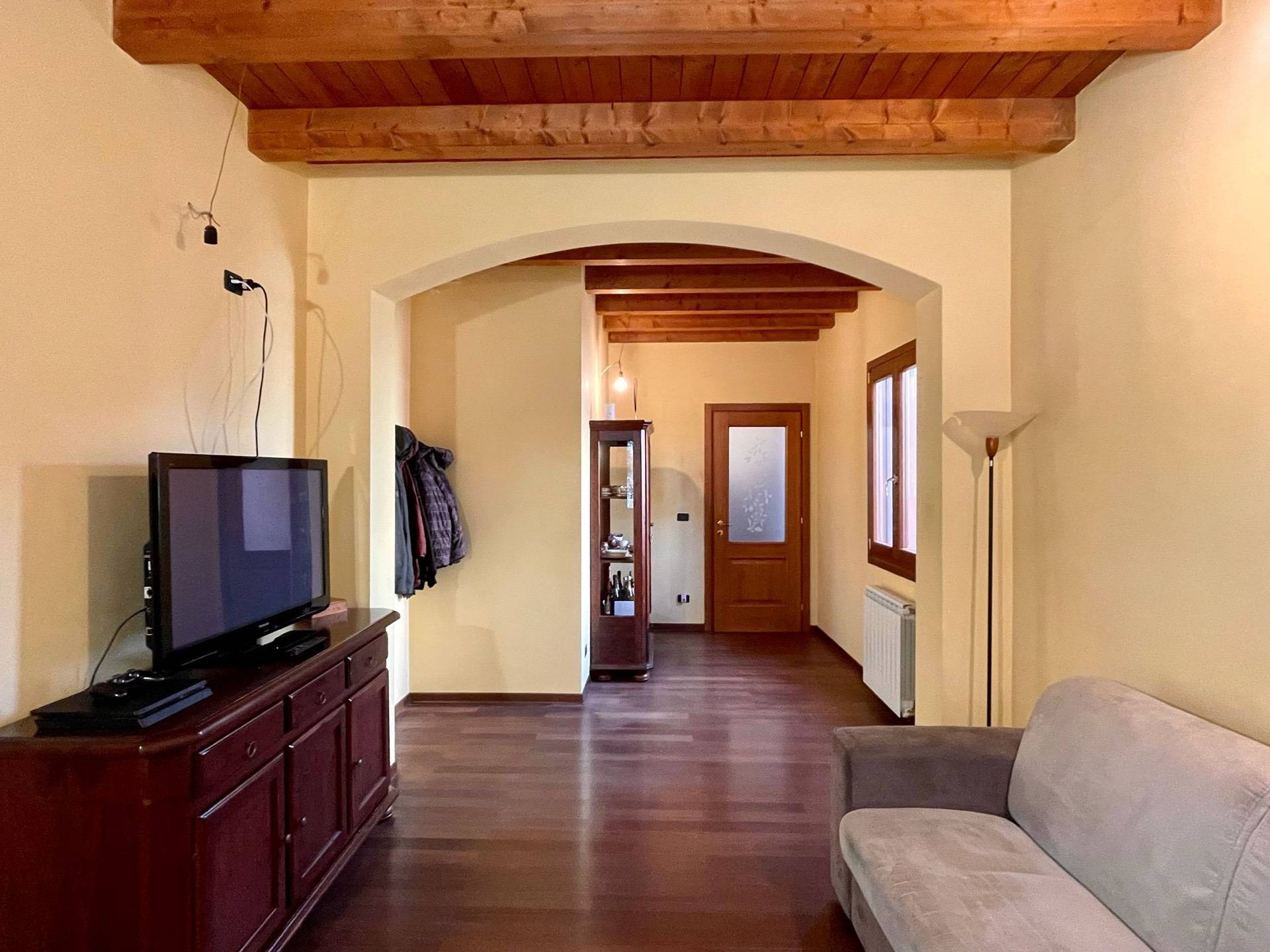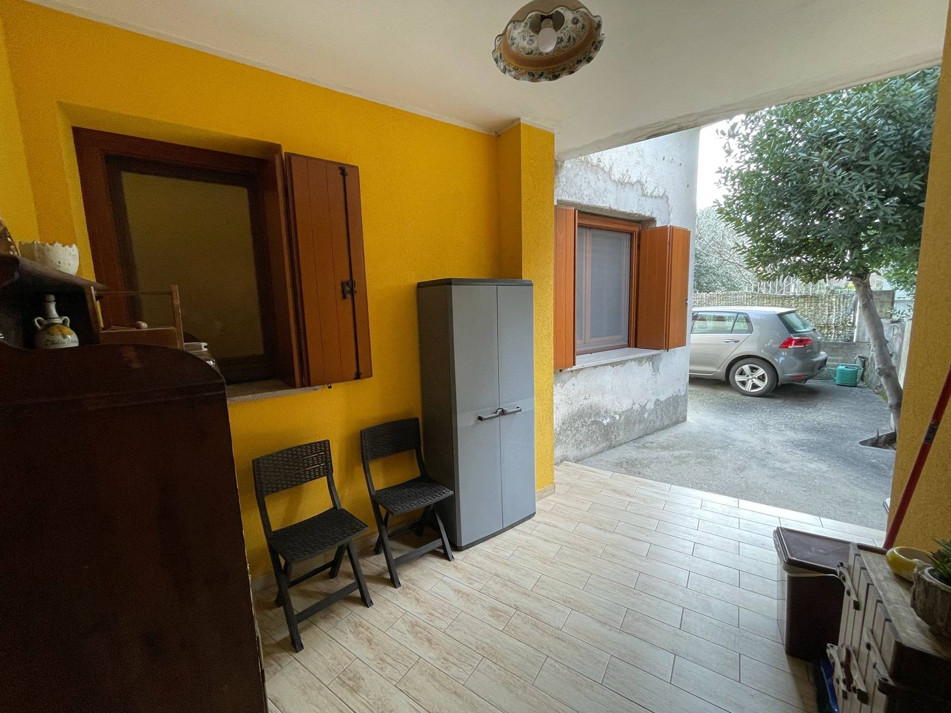 Ingresso, salotto, cucina abitabile con soppalco e terrazzo, disimpegno, due camere, bagno, esternamente porticato, lavanderia, giardino pertinenziale.