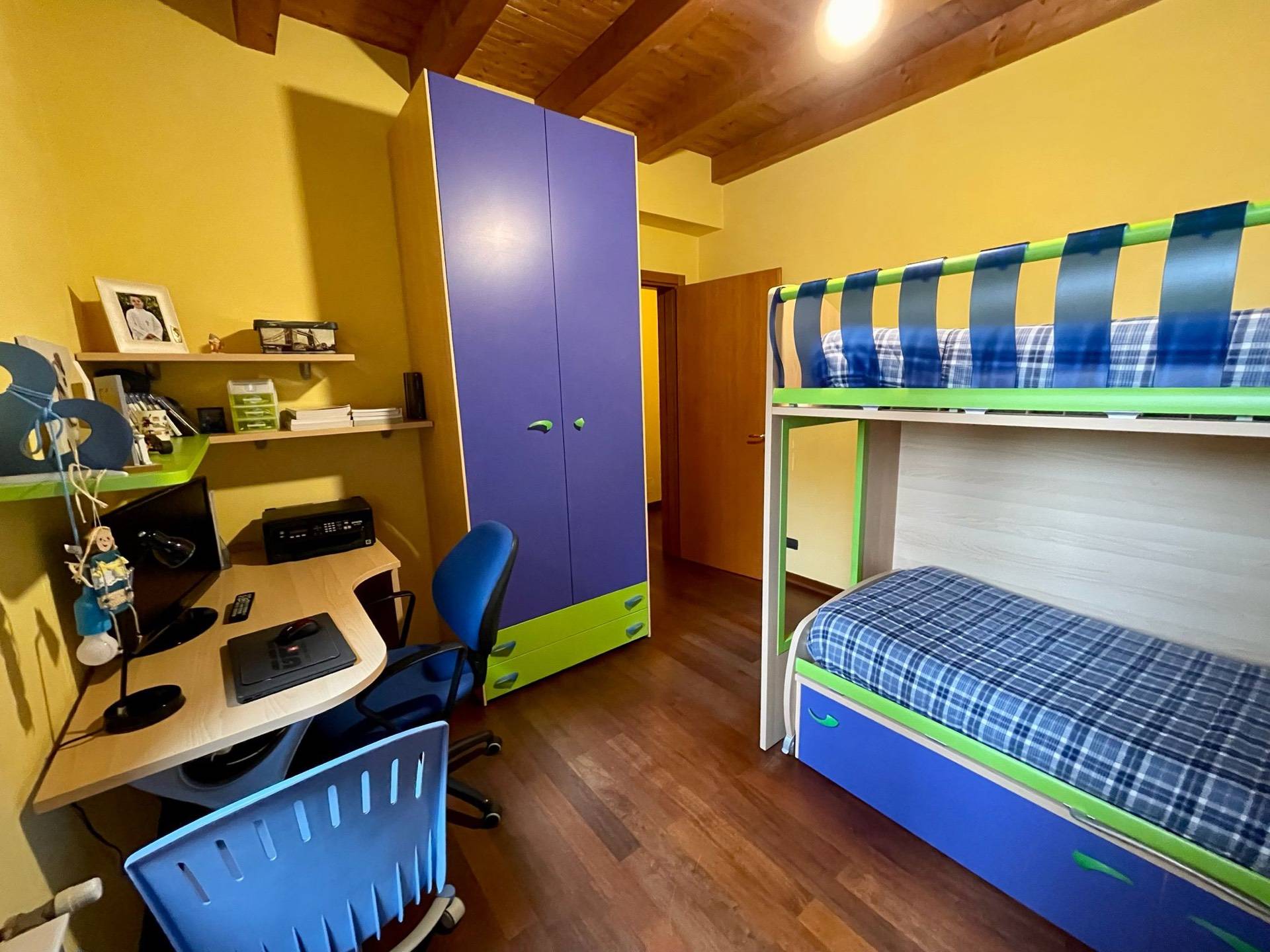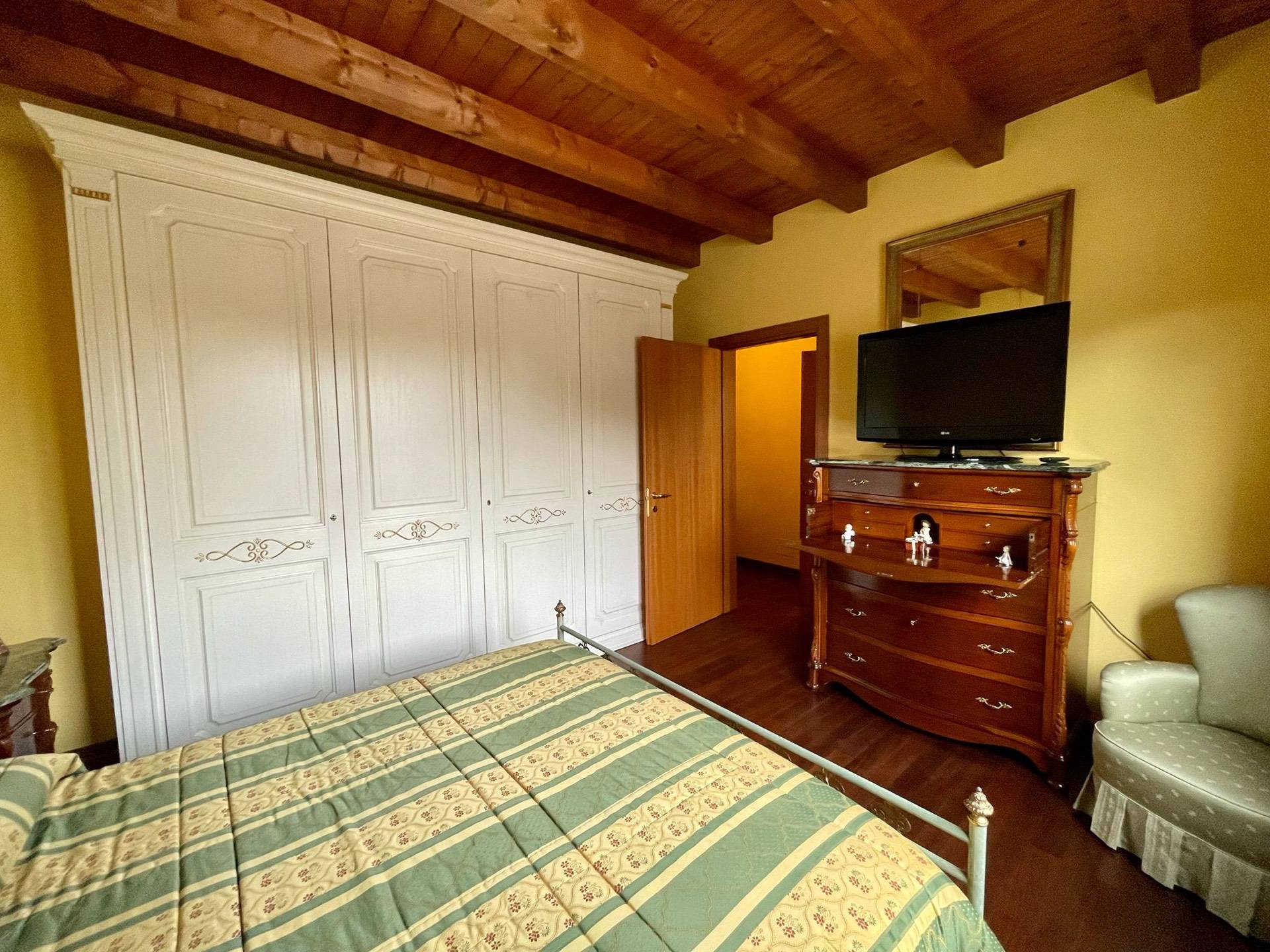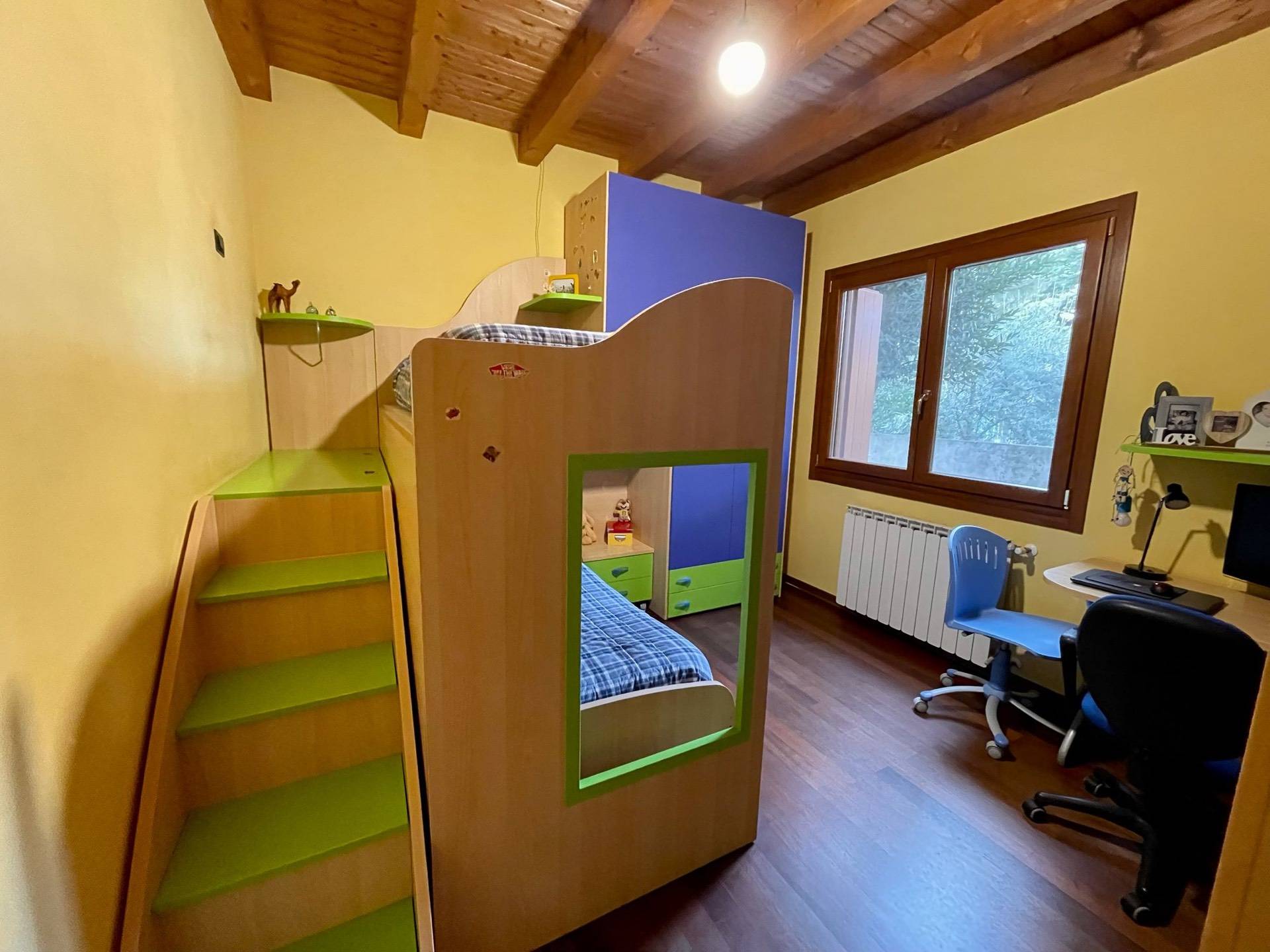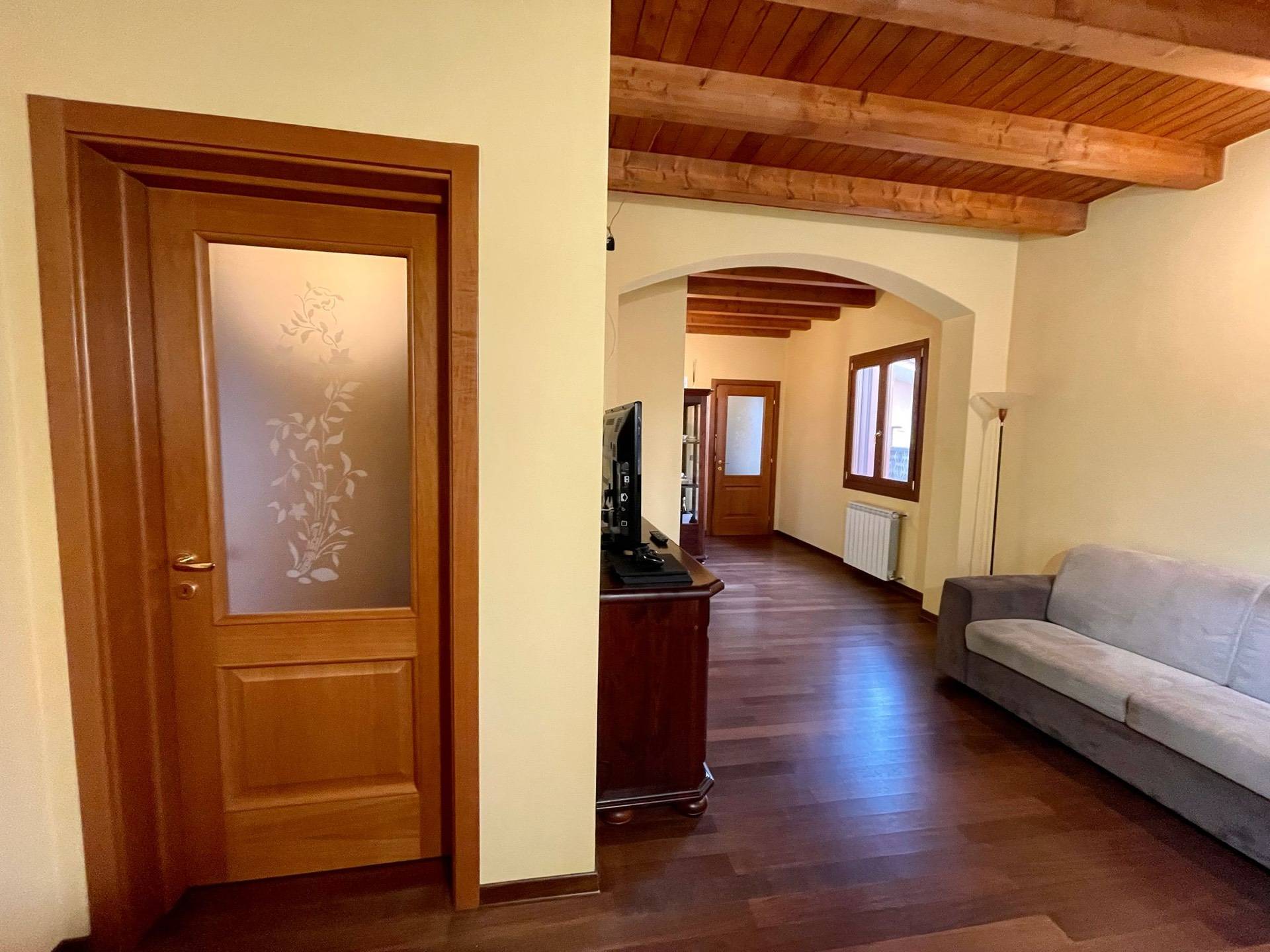 Ingresso, salotto, cucina abitabile con soppalco e terrazzo, disimpegno, due camere, bagno, esternamente porticato, lavanderia, giardino pertinenziale.